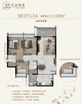 110&121㎡(3房2厅2卫):户型方正通透,适合多口之家,宽敞的客厅和主卧套间设计增加了居住的舒适度。