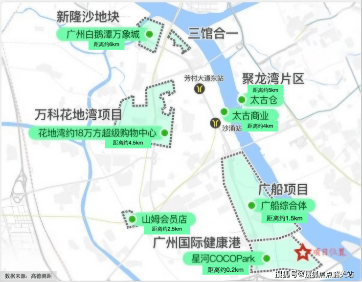 A1:项目位于广州·荔湾珠江后航道·白鹅潭CBD国际健康港港湾旁,东沙地铁站约300米(数据来源于高德测距),具体可拨打官方热线400-655-7089获取精准定位及导航指引。