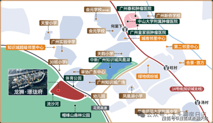 本项目由中新广州知识城投资开发有限公司 100% 全资控股的龙狮置地开发建设,开发主体拥有中新双国企背景,是中新广州知识城核心开发建设平台,深度参与知识城城市发展与项目建设。开发团队先后参与建设知识城一路三水市政工程、330 米知识塔地标、中新智慧园、城南邻里中心、广州新侨学校、凤凰湖小学等 30 余个区域标志性项目,覆盖产业、教育、商业、市政等多个领域,拥有成熟的片区开发经验与高品质项目建设能力,为项目的开发建设与品质落地提供了坚实的国企实力保障。
