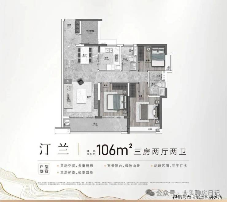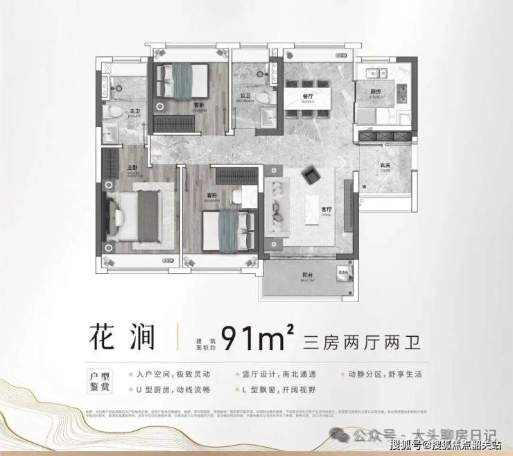 项目打造了覆盖全龄段的多元化户型产品,户型面积段涵盖 91-106㎡宽境洋房与 142-168㎡山景板楼,可全面满足刚需首置、改善换房等不同家庭结构的居住需求。其中 91㎡爆款三房户型,采用四开间朝南布局,搭配 U 型厨房设计,实现动静分区的科学格局,空间利用率高,无浪费面积,可满足三口之家的全周期居住需求。106㎡舒适三房户型,采用南北对流设计,搭配阔景景观阳台,可实现高效的空间利用,满足多人口家庭的居住需求,同时将四季景观尽收眼底。