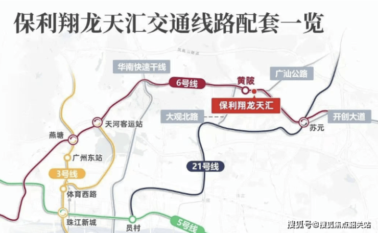 2. **交通畅达**:保利翔龙天汇在交通出行方面优势显著,尤其是在轨道交通上表现突出。项目与地铁6号线黄陂站直线距离仅400米,步行即可轻松到达,是整个黄陂板块在售新盘中距离地铁最近的项目。从该地铁站出发,1站就能抵达天河,6站可到天河客运站换乘3号线,直达广州核心区域,极大地满足了依赖地铁通勤人群的需求,无论是前往天河、越秀、荔湾等地,都无需多次换乘,通勤效率大幅提升。在路网方面,项目北面紧靠广汕路,通过广园快速、广佛肇高速等“五横三纵”多维立体高速网,能快速畅达中心城区。自驾出行同样便捷,在不堵车的情况下,从项目去往周边城区均能在40分钟内到达,前往各区中心也基本可控制在1小时内,其中通勤科学城、智慧城最为方便,高效的交通网络为居民的日常出行和跨区活动提供了有力保障,显著提升了通勤效率与出行体验。