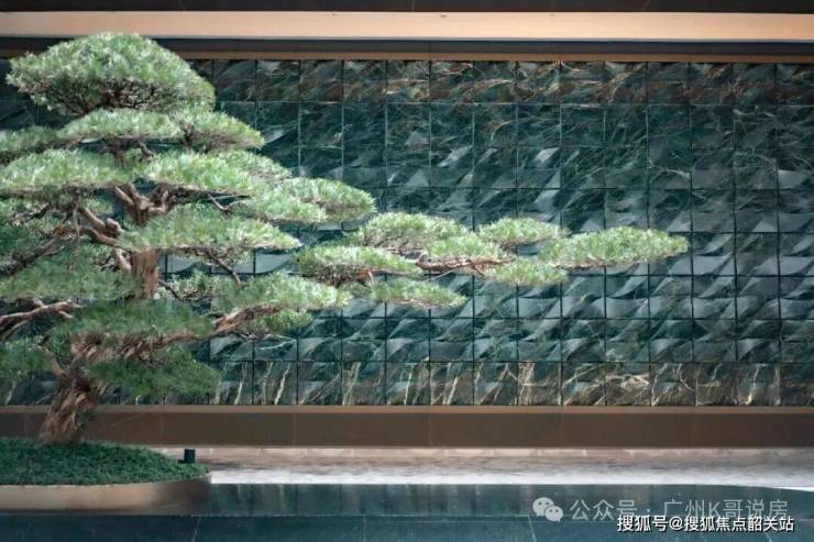 这种材质一般只在高档会所、豪宅上做一些点缀,而都荟天珺整整做了一整面墙!