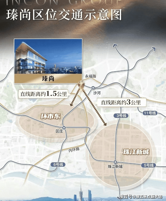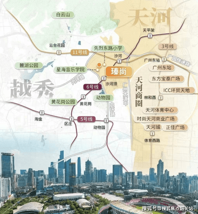 瑧尚紧邻三条地铁线(5号线、6号线、11号线),距离最近的6号线沙河顶站B出口仅约500米,出行极为便利。通过地铁网络,居民可以快速到达珠江新城、北京路、琶洲等地。此外,项目附近还有广州大道,驾车前往天河商圈、环市东商圈也十分方便。