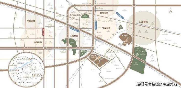 悦鉴通达——华北路、华林街全面贯通荣进街,5分钟到达劳动公园,15分种到达乐松、哈西等商圈,享城市级配套。