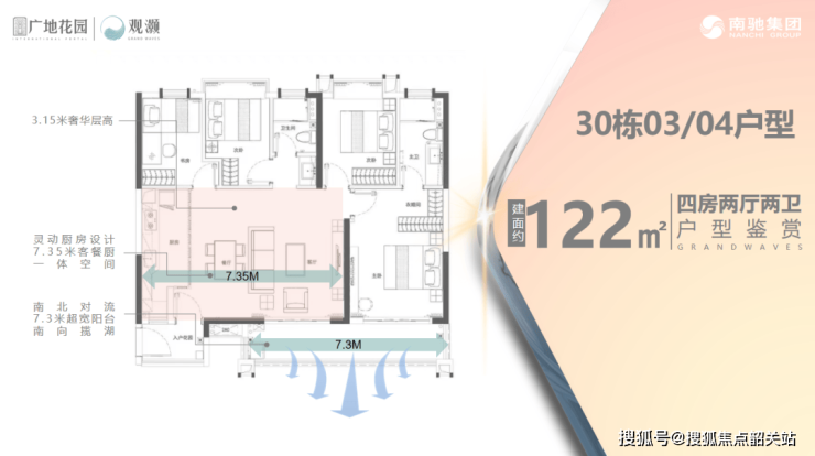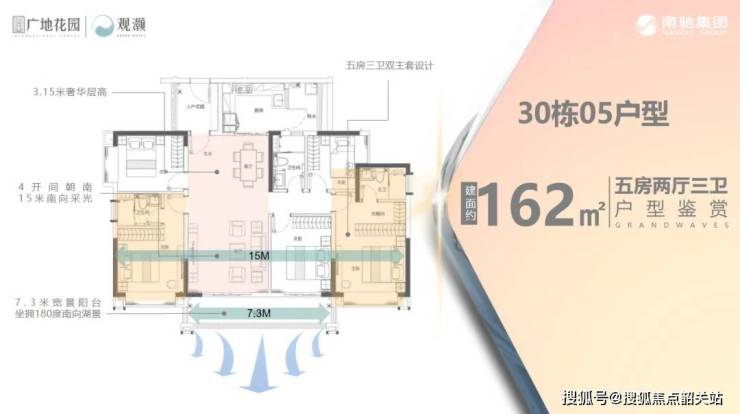 125㎡四房两厅两卫:横厅设计,6.8米超大阳台,直面中央园林,采光通风极佳,适合三代同堂家庭,目前该户型关注度极高。