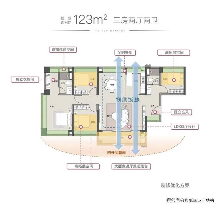 LDKB一体化设计:IMAX巨幕会客厅,南北对流、全屋四开间朝南。