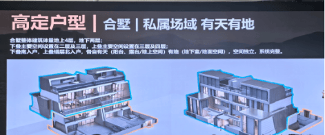 观樾天湖的户型设计独具匠心,尤其是其合墅产品。项目摒弃了传统的上下中三叠布局,仅设置合墅(上)和合墅(下),确保更低密居住的同时,让所有住户满足“有天”或“有地”的纯粹墅居感受。每户空间独立且系统完整,合墅(下)南入户,合墅(上)错层北入户,保证了更高的私密度。此外,上叠产品实际得房面积约730㎡,下叠产品实际得房面积约720㎡(不含南庭院),超高赠送面积进一步提升了居住品质。