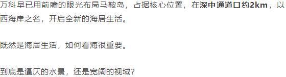 而万科西海岸,趁着马鞍岛腾飞的东风,自然已经吸引了很多的深圳人。