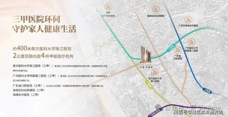 医疗资源尤为丰富,步行 500 米即达南方医科大学珠江医院,周边还有广州医科大学附属第二医院、广州市红十字会医院等多家三甲医院,为家人健康保驾护航。休闲方面,项目西边 500 米就是庄头公园,茶余饭后散步遛娃十分便捷,弥补了小区内部园林空间有限的不足。