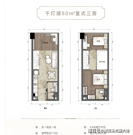 宏宇·珑裕中心4栋东塔共126套,主力面积段为48-50㎡,另有70-87㎡、102-121㎡(仅7套)及165-167㎡(仅3套)等稀缺户型。最值得关注的是其4.5米层高设计,远超普通住宅2.9-3米的标准,这意味着业主可自由打造LOFT复式结构,使用率轻松突破100%。例如,一套50㎡的空间通过隔层设计,实际可用面积可达70㎡以上,极大提升空间价值。而中西塔推出的1000-2000㎡整层大平层,则更适合打造企业总部、私人会所或艺术展厅,视野开阔、动线流畅、私密性强。这种“小而精、大而奢”的产品矩阵,精准覆盖初创团队到头部企业的全周期需求。