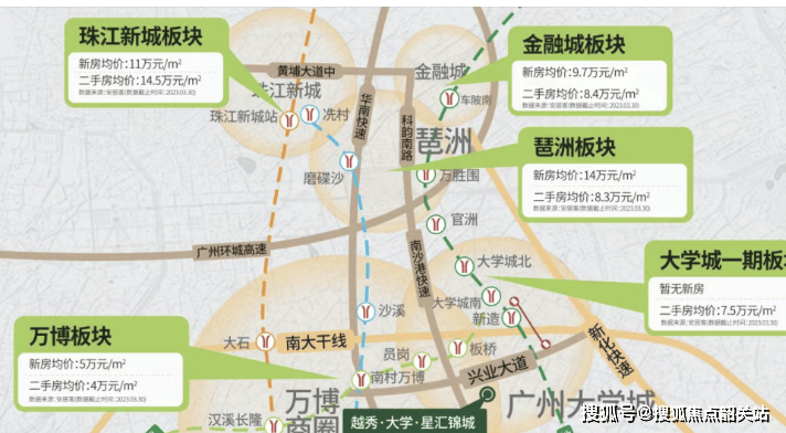 9. **潜力可期**:项目所在的南村板块,依托“国际创新城+南大干线”双重规划利好,未来区域价值将逐步提升,房产保值增值能力较强,适合刚需群体“自住+资产配置”。区域规划方面,国际创新城是广州重点发展的科创板块,已引入华南理工大学、暨南大学等高校研究院,以及一批科创企业,未来将形成“产学研”一体化产业集群,吸引大量高学历人才入驻,带动住房需求增长,而项目作为板块内少有的带名校配套刚需盘,将成为人才居住的优选。交通升级方面,南大干线已全线通车,作为番禺东西向核心主干道,串联万博CBD、广州南站、国际创新城,进一步提升区域交通便利性与产业联动性,推动板块价值升级;未来还将规划更多公共交通线路,进一步缩短与核心区域的通勤时间。配套升级方面,项目周边规划有商业综合体(距离项目1.5公里),未来将弥补区域大型商业空白,提升生活便利性;同时,随着国际创新城的发展,区域教育、医疗资源也将进一步优化,为项目带来长期价值支撑。市场表现方面,项目所在板块目前房价处于番禺刚需梯队(约2.8-3.2万/㎡),低于万博CBD(4-5万/㎡),随着板块发展成熟,房价存在一定上涨空间;且项目教育资源优质、户型实用,未来二手房流通性较强,即使需要置换,也能保持较好的资产价值。