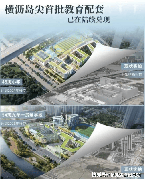 横沥岛上规划有多所小学、九年制学校、十二年制学校及国际学校,确保教育资源充足。其中,一所54班九年制学校将于2026年投入使用,另一所48班小学则于2025年启用。