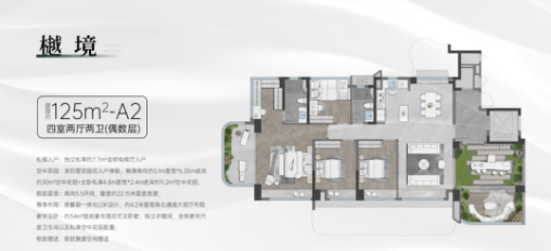项目涵盖82㎡至125㎡三至四房户型,满足不同家庭需求。户型设计注重采光与通风,部分户型拥有6米挑高的私家花园,实现超级大方厅的效果。特别是84平方米的户型,偶数层的空中花园面积可达24平方米,提供了极佳的户外活动空间。