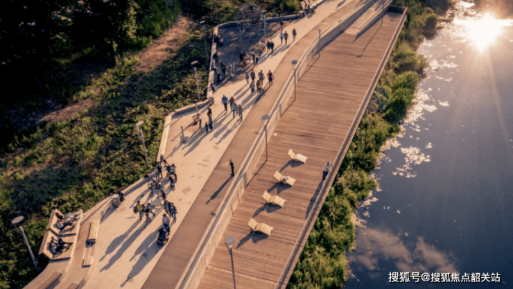 园林设计以“垂直江景”为理念,打造了“一轴多节点”的立体园林。设计上引入了“无界江景”的概念,将市桥河的一线江景与小区内部园林无缝衔接。社区内还规划了游泳池、全龄活动空间、架空层泛会所等,无论刮风下雨,业主都能享受高品质的休闲时光。