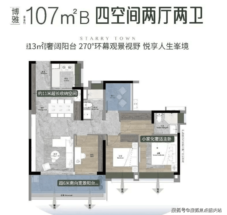越秀·大学·星汇城聚焦刚需与刚改家庭需求,独创户户南向设计,在售建面约88-125㎡三至五空间,均为高使用率产品,配备270°宽景大阳台,4-4.5面宽朝南,兼顾舒适度与实用性。此次15栋升级焕新,推出全盘最后一批88㎡南向三房、107㎡南向对流四房,好楼层任选、收官绝版,成为项目核心热销户型。
