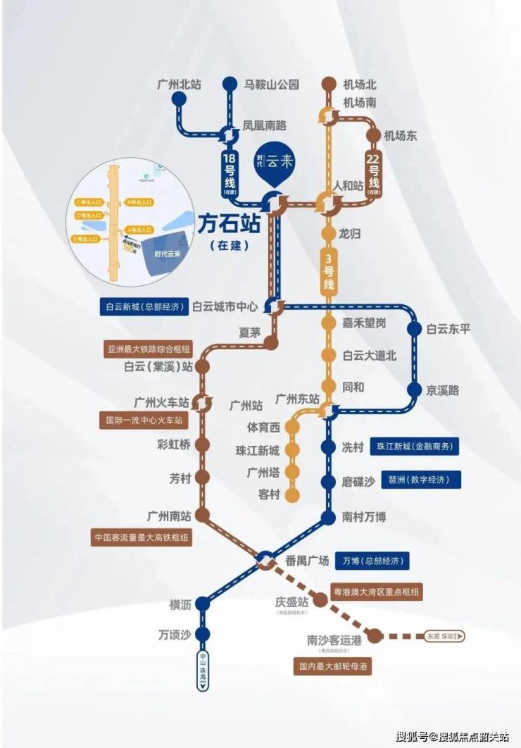 时代云来距离方石站仅约160米,通过双高速地铁线,居民可以快速到达广州火车站、广州东站以及珠江新城等重要交通枢纽。此外,项目靠近空港大道,这条贯穿白云南北部的新中轴线全长约18.65公里,串联起白云新城总部集聚区、广州设计之都等多个重要发展区域,进一步提升了项目的交通便利性。