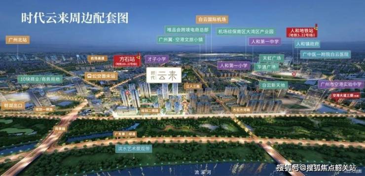 位于广州市白云区核心地带的时代云来,紧邻方石站,距离仅约160米。作为白云新城中轴上的重要组成部分,时代云来以其独特的地理位置和便捷的交通条件吸引了众多目光。通过双高速地铁线,居民可以轻松抵达广州火车站、广州东站以及珠江新城等城市核心区域。这里不仅拥有繁华的城市景观,还坐拥流溪河的自然美景,为居住者提供了一个既现代又宁静的生活环境。