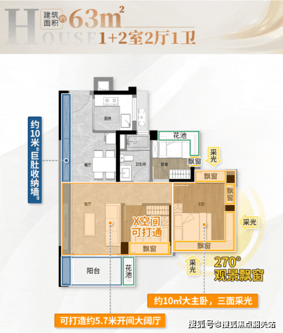 A:总价100万起主要针对建面63㎡的三房两厅一卫户型。该户型设计精巧,实用率高,非常适合刚需家庭。按照目前的购房政策,首套房首付比例较低,具体金额可根据个人征信情况和银行政策进行计算,大致在30万左右即可起步,门槛非常亲民。