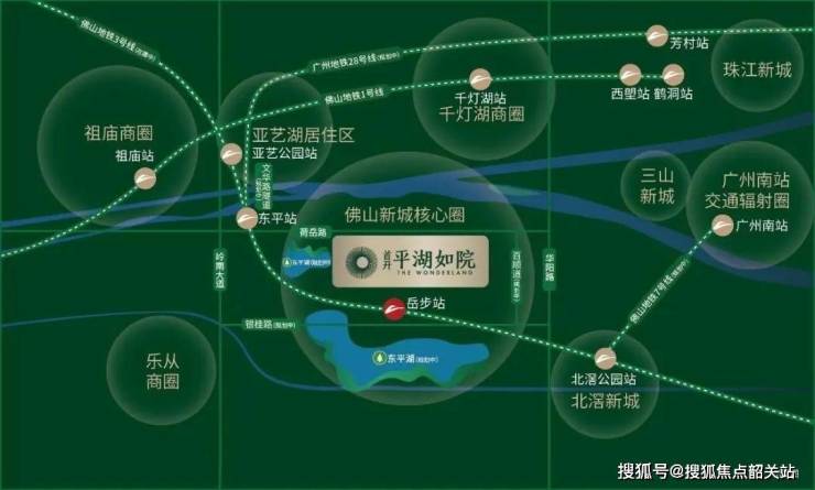 首开平湖如院坐落于广佛高质量发展融合试验区的核心位置,占地面积约28万平方米。北侧紧邻东平湖体(近40万㎡),南边则是细海河公园,内含约8万㎡湿地公园、约6000㎡的文化中心以及4公里高架自行车长廊等生态景观休闲配套。此外,项目周边还有佛山公园、龙舟广场、滨江湿地公园等多公园环绕,为居民提供了一个亲近自然的生活环境。