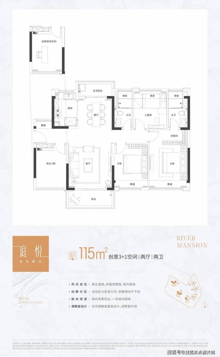 115㎡庭悦3+1房户型:动静分区明确,设计人性化,满足多样化生活需求。