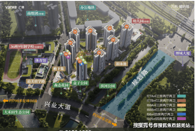 项目西侧规划2万平方米滨河公园,串联垂钓区、夜跑道、露营基地;北侧打造“禾田水韵”示范区,配备小型气象站、植物认知园;东侧700米即达广州足球公园。社区内规划“主题盒子会所”,涵盖童玩空间、健身中心、四点半学堂,实现“出则繁华,入则宁静”的理想生活。