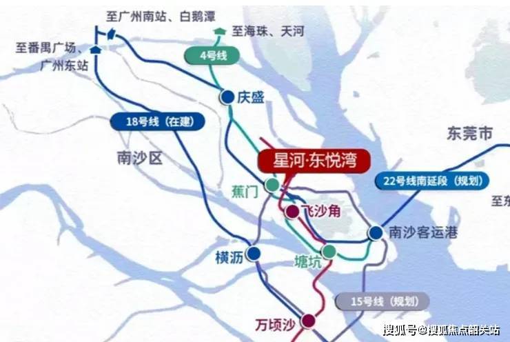 星河东悦湾还处于地铁4号线、22号线东延段(规划中)、15号线(规划中)三线交汇处,同时与蕉门地铁站的直线距离仅约380米,能够快速通达广州各城区,甚至是东莞、深圳等大湾区城市。