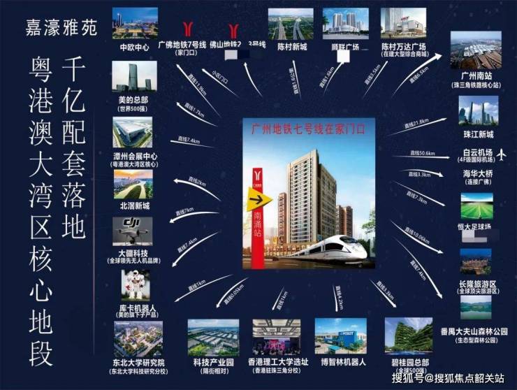 交通方面:地铁路网——广州地铁7号线(已通车)起点站由大学城南至美的大道全方位无缝连接广佛