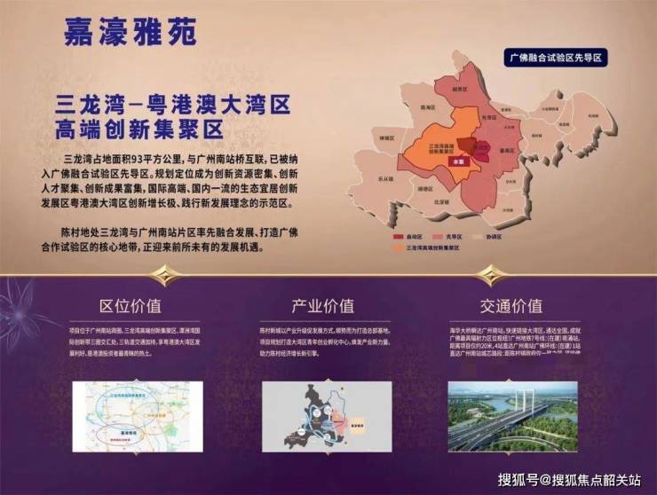 嘉濠雅苑地处北滘陈村交界,背靠三龙湾规划,紧邻北滘新城和陈村新城两大成熟板块,项目南侧就是北滘科技产业园,重点引进生物医药、互联网+、软件及服务外包等前端产业,同时配套人才中心、创意中心、法律、金融、知识产权服务。