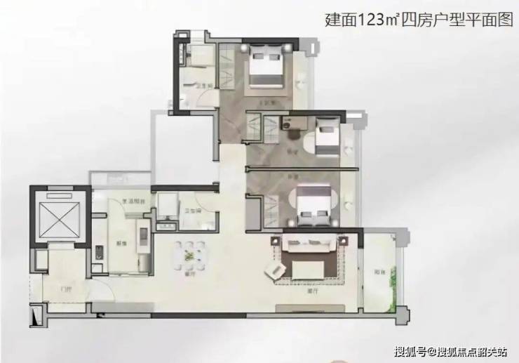 143㎡四房:双套房设计,客厅开间4.5米,适合三代同堂;