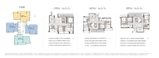 9栋:47层高,3梯4户,主力户型为130㎡、165㎡、185㎡,预计2027年9月30日交付,16层与32层为避难层,不影响正常居住体验。
