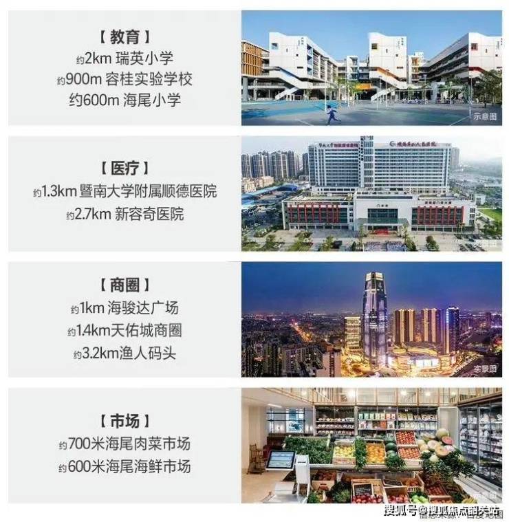 项目周边教育资源丰富,能满足全龄段教育需求。2022 年容桂投入 9 亿元全面提升学校办学条件,为教育质量提供了坚实保障。顺控桂樾台所属的红星社区,拥有广东省一级公办学校瑞英小学(约 2.8km)、海尾小学(约 900 米)及容桂实验学校(约 1.4km)。从小学到中学,优质的教育资源为孩子的成长提供了良好的学习环境。家长无需为孩子的教育问题四处奔波,孩子能在浓厚的学术氛围中接受良好的教育,为未来的发展奠定坚实基础。