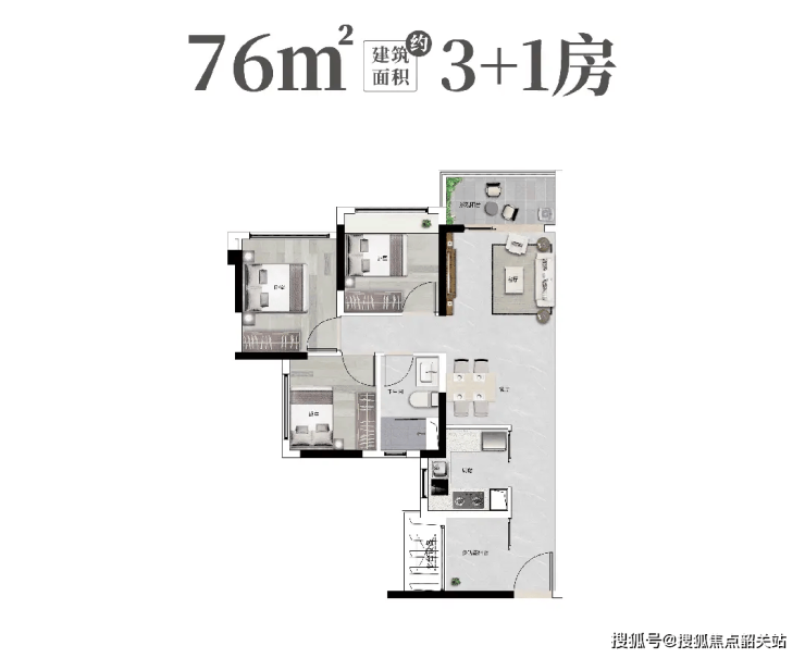 多功能房:6㎡,可作为书房、游戏室或客房。