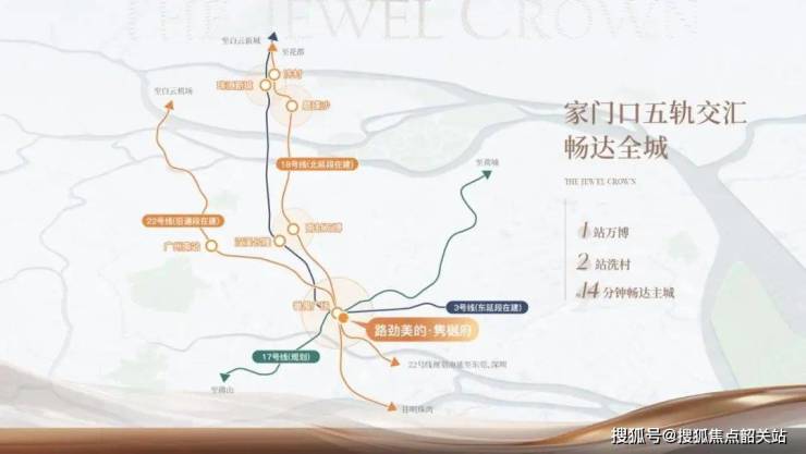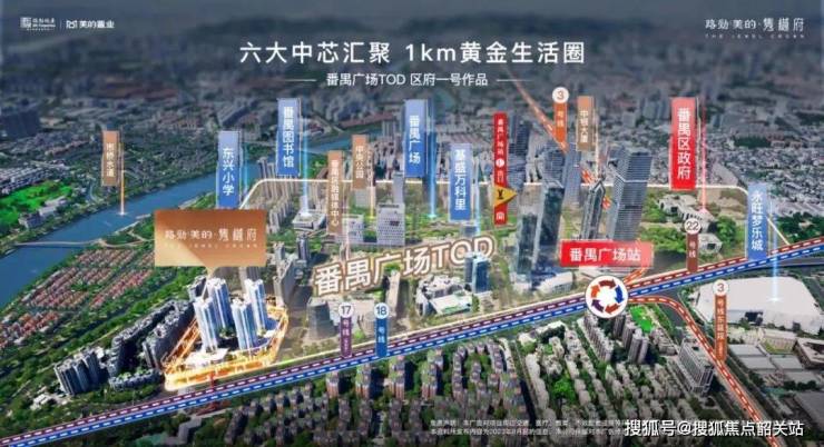 地铁:3号线番禺广场站(约500米)、18/22号线(在建)三轨交汇,30分钟通达全城;