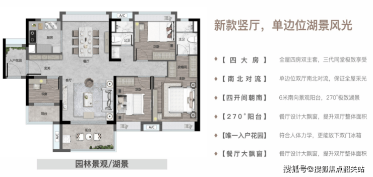 【140㎡四房二厅二卫】四房双主套,6米大阳台,望湖极致景观面!!