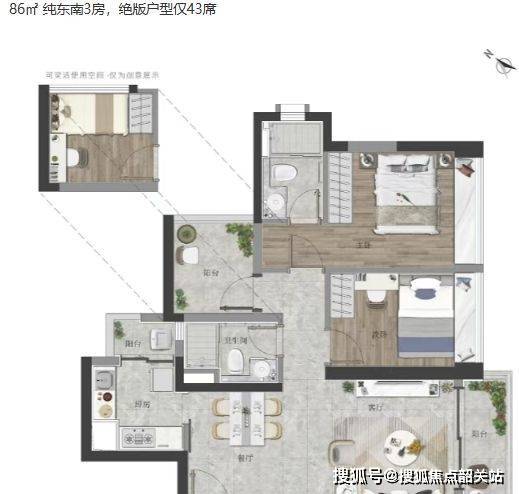 86㎡为纯东南向,稀缺仅43席;
