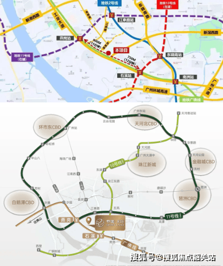 与周边其他项目相比,中建天钰的地段优势在于其“左右逢源”的通达性。项目精准地落位于广佛线燕岗站与石溪站之间,形成了罕见的“双地铁、三轨道”加持格局。步行约750米可达燕岗站,步行约900米即达石溪站。燕岗站不仅是广佛线的关键节点,更是广州大环线11号线的重要站点,这意味着业主可以轻松通过11号线快速直达琶洲人工智能与数字经济试验区、天河中央商务区以及越秀老城区,享受核心区的发展红利。而石溪站作为广佛线与在建10号线的换乘枢纽,未来通车后,将实现与珠江新城、金融城等顶级商圈的无缝对接。这种立体化的交通网络,让中建天钰的业主无论是在海珠本地工作,还是往返天河、番禺乃至佛山,都能享受到极致的通勤便利。