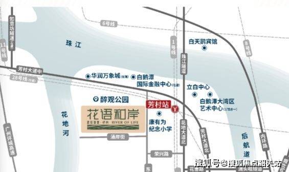 水运:约 1 公里可达芳村码头,通过水巴 S2 线可前往中大、广州塔,S6 线可到老荔湾黄沙等地,为居民带来独特的滨水休闲出行体验。售楼处电话:4009909752 。
