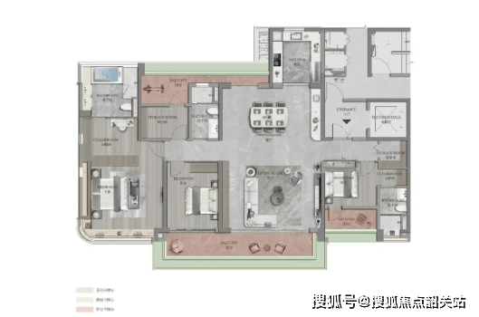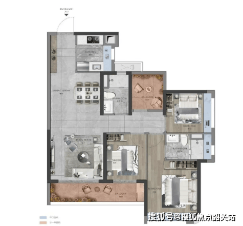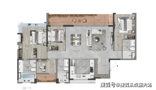 188㎡四房两厅三卫,独立入户,约17米五面宽观江视野,近10米超长阳台,无遮挡望江。