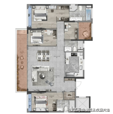 210㎡四房两厅三卫,一梯一户,LDK一体化方厅,南北通透实用大气。