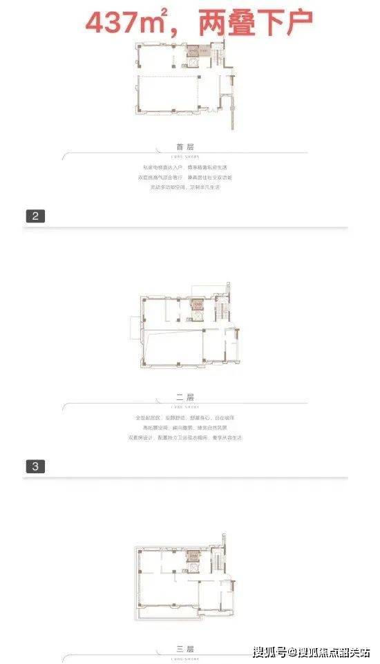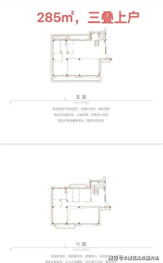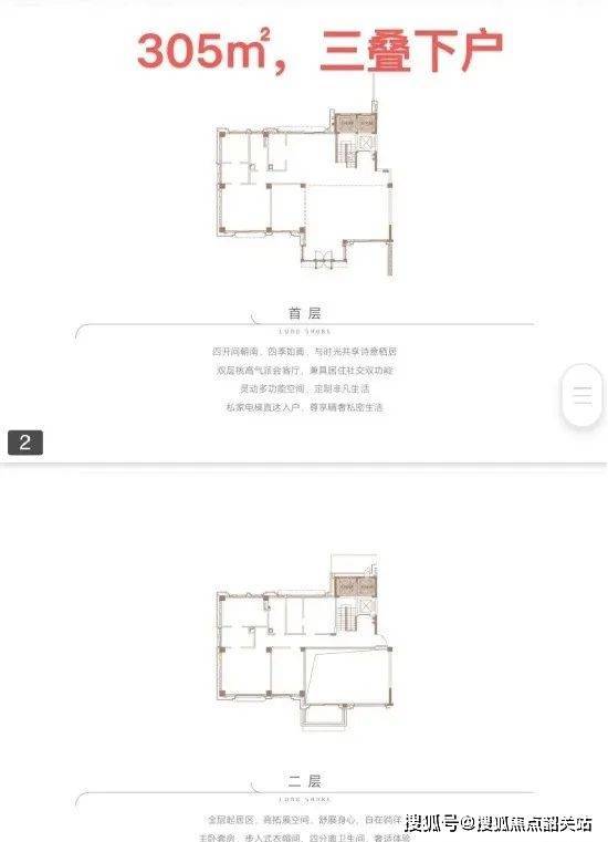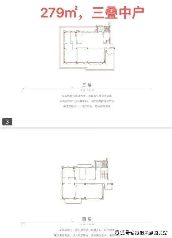 三叠户型:上叠285㎡、中叠279㎡、下叠305㎡