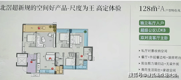 第二款户型是128㎡A户型,该户型主打“舒适改善”,适合有一定居住品质追求的家庭,独立电梯厅入户的设计,是该户型的一大亮点。独立电梯厅入户,不仅提升了业主的尊贵感与私密性,避免了与其他业主共用电梯厅的尴尬,同时也能利用电梯厅的空间,打造专属的收纳区域,存放鞋子、杂物等物品,进一步提升空间利用率。电梯厅直接入户,让业主的归家之路更加便捷、高效,告别等待电梯的烦恼,享受专属的归家仪式感。