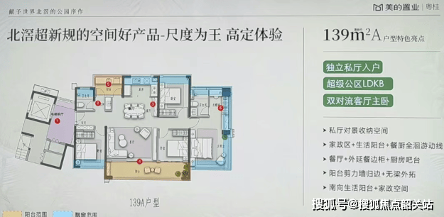 第三款户型是139㎡A户型,该户型主打“品质改善”,针对追求高品质生活的家庭打造,LDKB一体化设计是该户型的核心亮点。LDKB一体化设计,即客厅(Living room)、餐厅(Dining room)、厨房(Kitchen)、阳台(Balcony)一体化设计,这种设计打破了传统空间的界限,将四个空间完美融合,不仅提升了空间的通透度与采光效果,还能最大化利用空间,提高空间利用率。同时,LDKB一体化设计也缩短了家人之间的互动距离,让家人在烹饪、用餐、休闲的过程中能够随时交流,营造温馨和谐的家庭氛围。