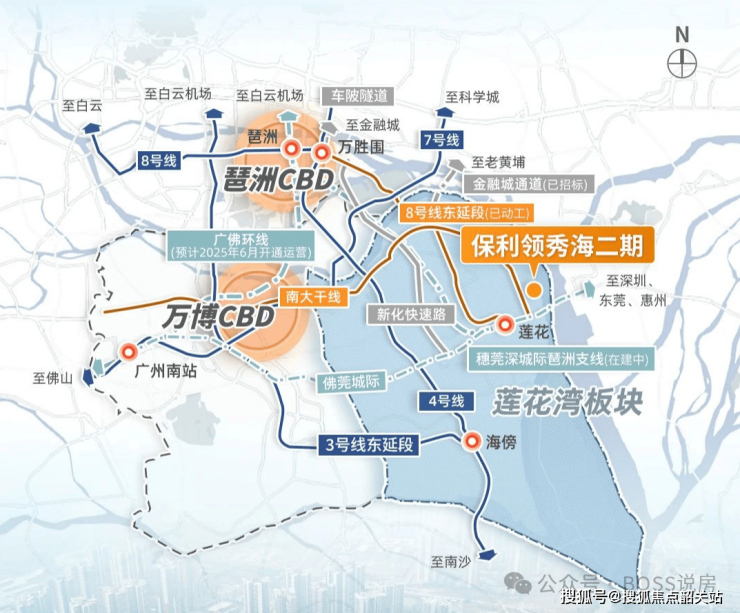 附近有现成的莲花站,聚集8号线东延线(已动工)、佛莞城际(已通车)、穗莞深琶洲直线(在建)、17号线(规划中)。