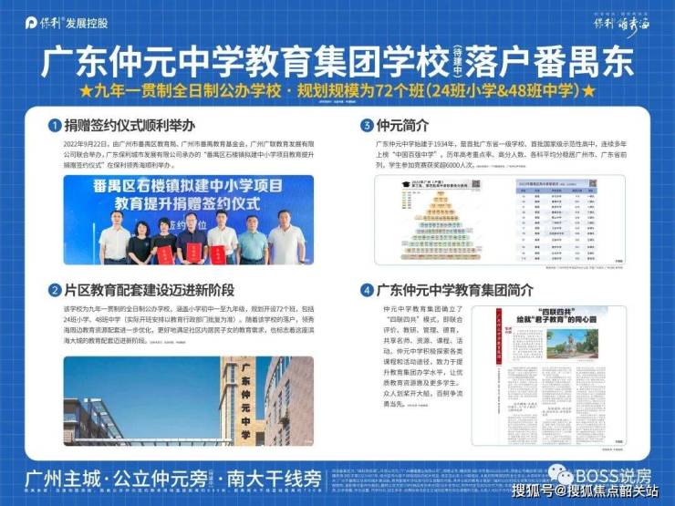 教育资源丰富:周边学校众多,1 公里范围内聚集了多所幼儿园、小学、初中,包括九年一贯制的广大附中番禺实验学校、石楼镇中心小学山海连城学校,以及广钢利联幼儿园、华师大幼儿园等。此外,广东仲元学校也将在片区打造 9 年一贯制中小学,为业主子女提供了较多的教育选择。
