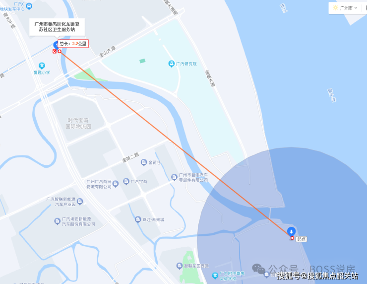 广医二院番禺院区,直线约 8 公里
