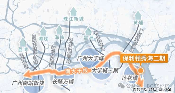 交通出行潜力大:项目距离南大干线仅 750 米,由此出发,去往万博、大学城、金融城、琶洲等重要区域的距离均在约 18 公里范围内,约占广州通勤半径的一半,自驾出行十分高效。虽然目前地铁出行不太方便,但周边有规划中的地铁线路,如穗莞深城轨琶洲支线、佛莞城轨、8 号线东延段、17 号线等,未来轨道交通的完善将提升出行便捷性。