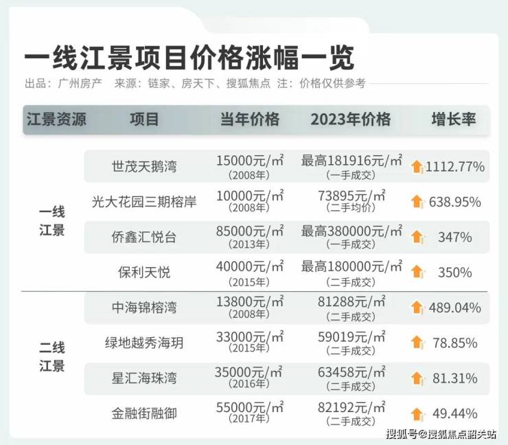 据统计,2013年至今,广州仅出让9宗临江地块,稀缺程度可想而知,江景豪宅最高涨幅高达1112%。