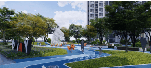 项目采用海绵城市设计理念,打造了一个5M智慧健康社区,绿化率达到了33%。内部设有约1万㎡的生态园林,包含运动养生圈、亲子活动圈、邻里生活圈、绿色生态圈、智慧便利圈等多个功能区域,内置乐环跑道、全龄童趣园、阳光草坪和负离子微气候调节系统等。