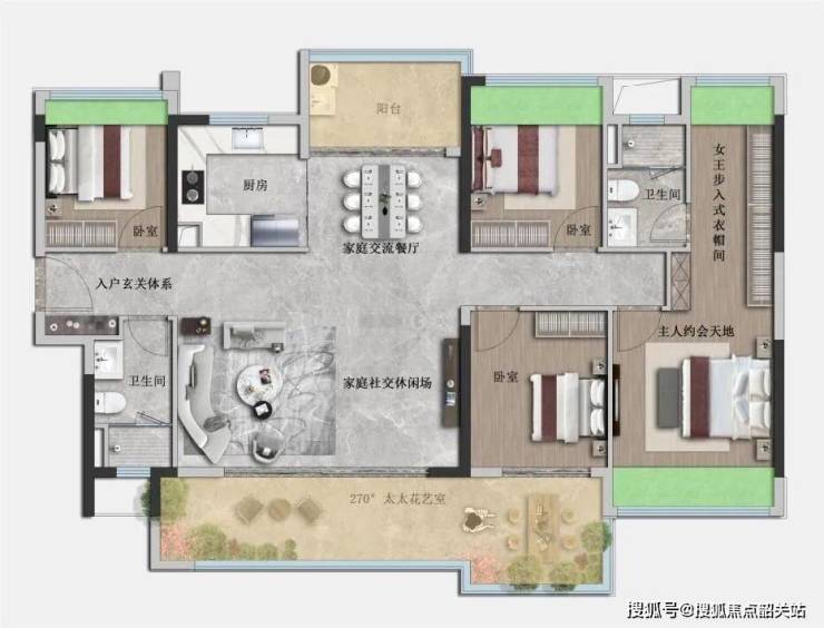98㎡三房两厅两卫:通过LDK一体化布局、飘窗全赠送等设计,实现小户型大空间的居住体验。