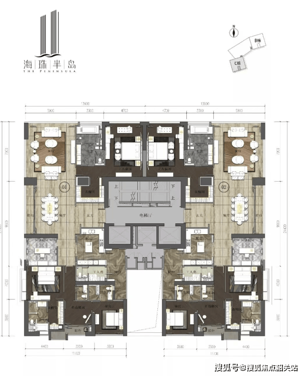 海珠半岛花园在售的290-315㎡四房两厅四卫+工人房户型,专为高端改善型家庭设计,在户型布局与空间利用上充分考虑了豪宅业主的居住需求,展现出“空间开阔、布局合理、利用率高”的特点,完全满足多人口高端家庭的居住需求。从空间尺度来看,户型层高达到3.4米,远高于普通住宅,配合大面积的观景窗户,让室内空间显得格外开阔通透,有效避免了大户型可能出现的“压抑感”;同时,3梯2户的梯户比设计,确保业主上下楼便捷,且每户拥有独立的电梯前室,提升了居住私密性与尊贵感。